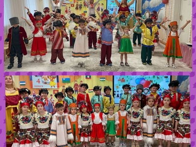 В старших и подготовительных группах прозвучал настоящий гимн дружбы – мероприятие «Дружат дети всей земли!». Наши воспитанники с гордостью демонстрировали национальные костюмы, зажигательно танцевали народные танцы и водили дружные хороводы. А малыши порадовали всех трогательной песней про Россию!