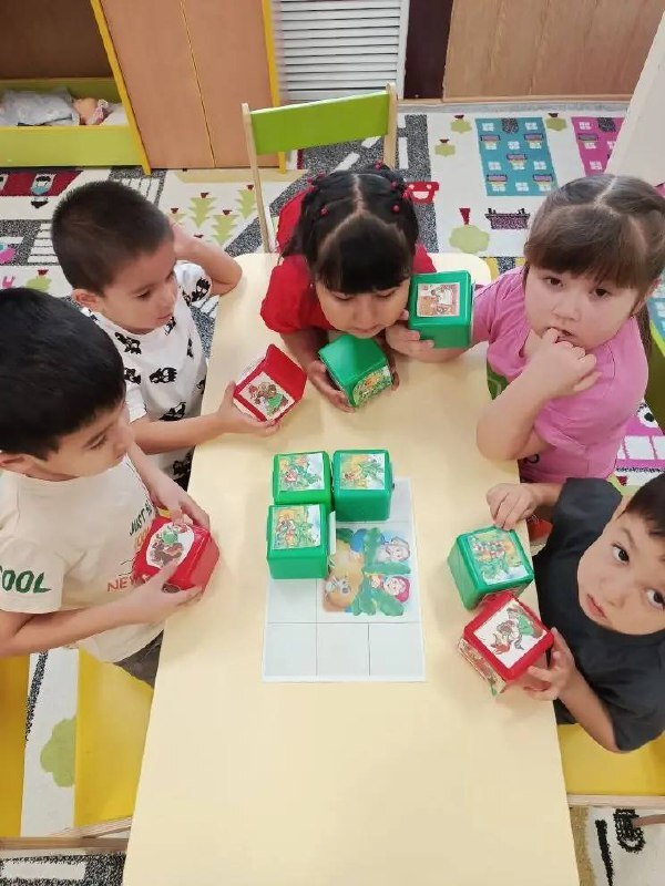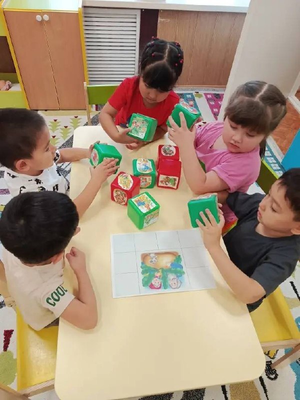 Игровой процесс может проходить в разных форматах: - Коллективный — дети по очереди продолжают рассказ друг друга, учатся слушать и грамотно выражать свои мысли, поддерживая сюжетную линию. - Индивидуальный — ребёнок самостоятельно создает полную сказку, развивая воображение и умение структурировать повествование. Таким образом, игра с кубиками-сказками становится не просто развлечением, но и эффективным инструментом для развития воображения и формирования у малышей навыков построения связной речи в игровой форме.
