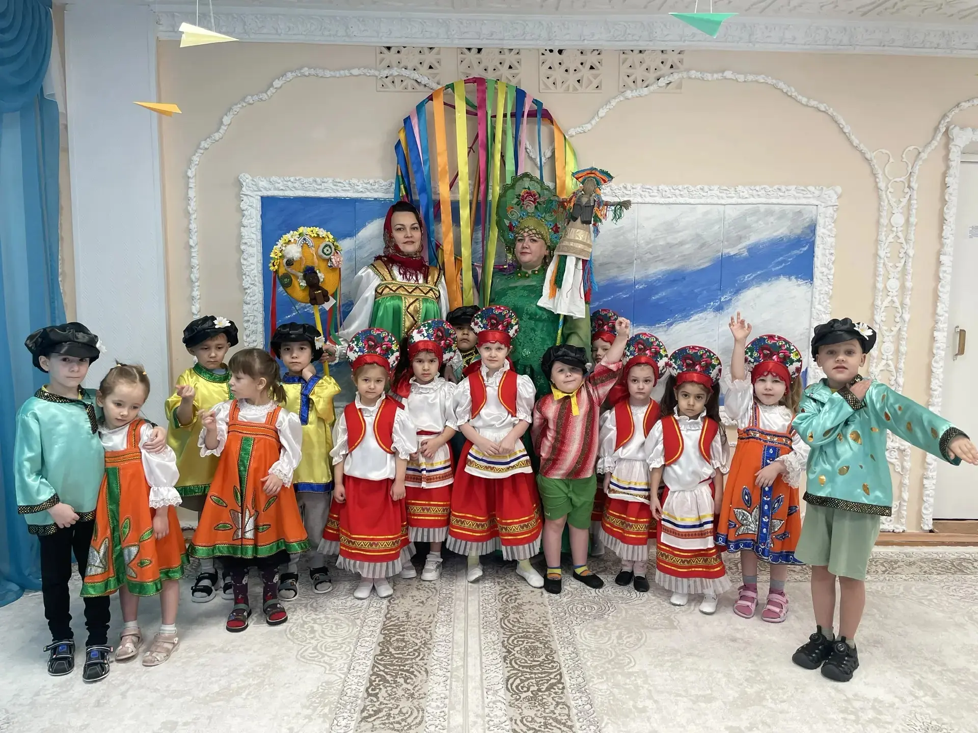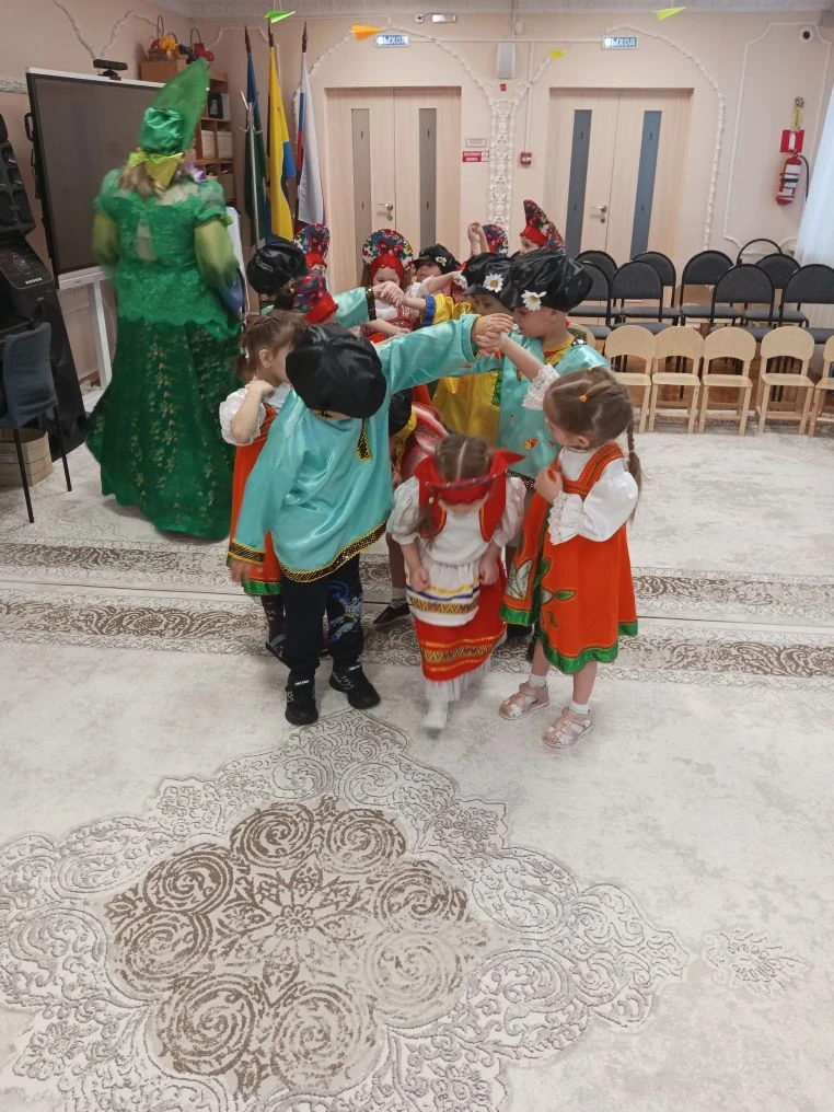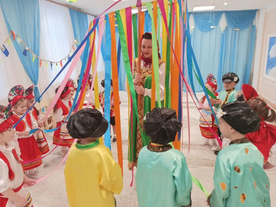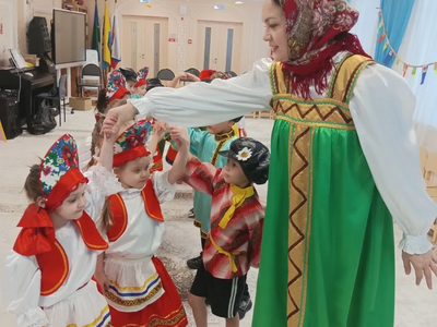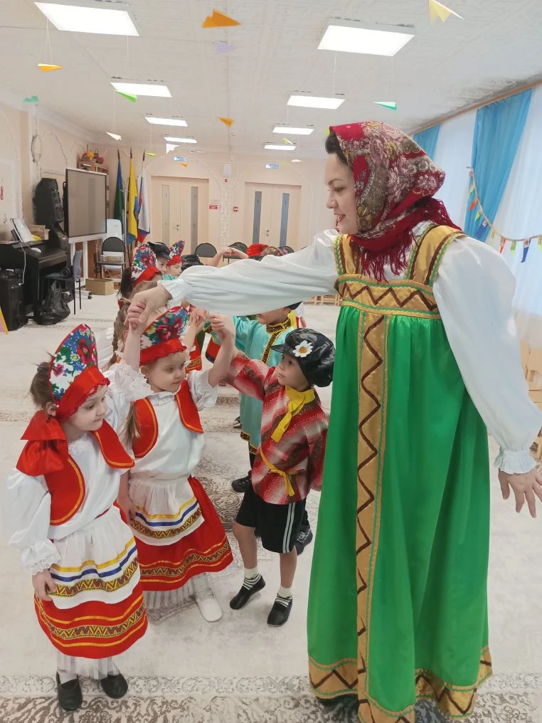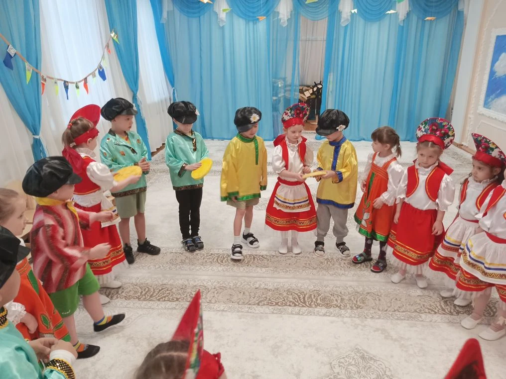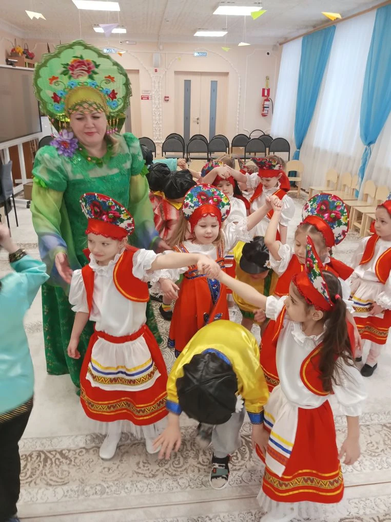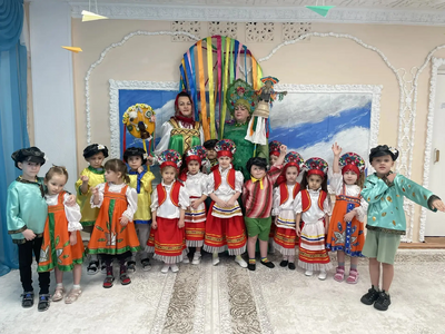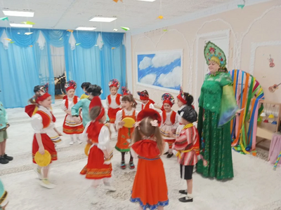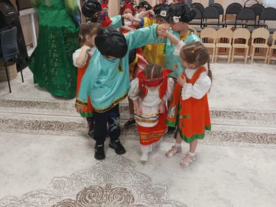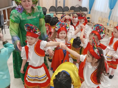 Педагоги рассказали детям о многообразии видов этого аксессуара: от легких ситцевых платочков до знаменитых на весь мир павловопосадских и оренбургских пуховых шалей. Дошколята с интересом изучали названия узоров и традиционные орнаменты. Итогом занятия стали уникальные работы: используя навыки конструирования и кисти с красками, дети создали свои собственные авторские платки, украсив их яркими цветами и народными узорами. Каждая работа получилась неповторимой, отражающей детское восприятие красоты. Продолжением тематической недели стал музыкально-развлекательный праздник «Широкая Масленица». Зал наполнился звуками народных мелодий, а детские улыбки осветили всё вокруг ярче весеннего солнца. Воспитанники групп «Теремок» и «Незнайка» с задором пели частушки, водили хороводы и танцевали. Но какая же Масленица без традиционных забав? Программа праздника была насыщена русскими народными играми:
